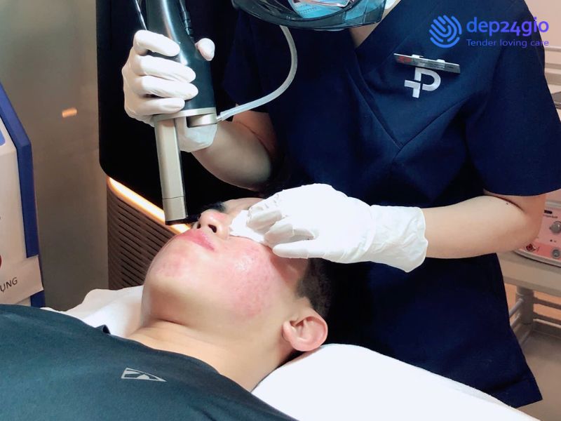 Đỏ da và sưng tấy: Sau khi điều trị, da có thể bị đỏ và sưng nhẹ, thường kéo dài vài giờ đến vài ngày.