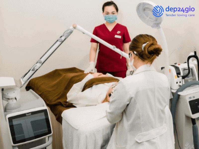 Laser CO2 Fractional: Phương pháp này sử dụng laser CO2 để tạo ra các vi điểm trên da, kích thích quá trình tái tạo và làm mới da. Nó không chỉ giúp làm sáng da mà còn cải thiện sẹo và nếp nhăn.