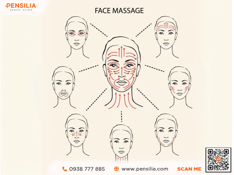 Massage da mặt cải thiện tuần hoàn, thúc đẩy collagen.