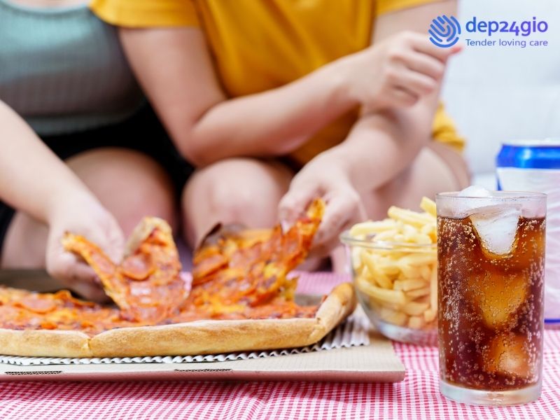Chế độ ăn uống cũng ảnh hưởng đến sức khỏe và sắc tố của làn da. Việc tiêu thụ nhiều đồ ăn nhiều đường, dầu mỡ, hoặc thực phẩm chế biến sẵn sẽ làm gia tăng sự oxy hóa trong cơ thể, khiến da trở nên xỉn màu, sạm đen. Để duy trì làn da sáng mịn, bạn nên bổ sung các thực phẩm giàu vitamin C, E, và chất chống oxy hóa như trái cây, rau xanh, hạt và cá.