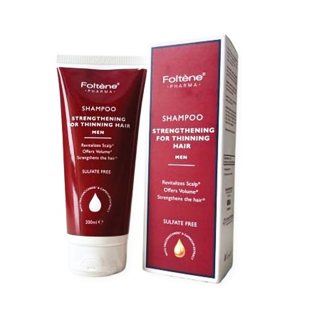 Giải pháp đặc biệt giảm rụng tóc, giúp giảm tiết bã nhờn và giảm gàu. Dầu gội giảm rụng tóc dành cho Nam Foltene có chứa thành phần Tricalgoxyl chứa Mucopolysaccharide có tác dụng giúp giảm tóc rụng, cho mái tóc vẻ ngoài chắc khỏe. Hỗn hợp các vitamin (B5, B6, E) có tác dụng nuôi dưỡng mái tóc và bảo vệ da đầu, giúp giảm tiết bã nhờn, giảm gàu. Đặc biệt, sản phẩm với công thức dịu nhẹ, rất thích hợp cho sử dụng hàng ngày, có thể thay thế dầu gội thông thường.