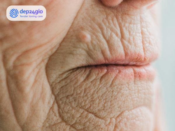 Nếp nhăn rõ rệt: Xuất hiện ở trán, khóe mắt, và rãnh mũi má, tăng dấu hiệu tuổi tác.