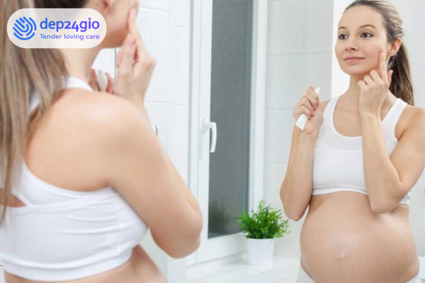 Chọn mỹ phẩm dành riêng cho phụ nữ mang thai. Tránh sản phẩm chứa retinol, paraben hoặc hương liệu mạnh.
