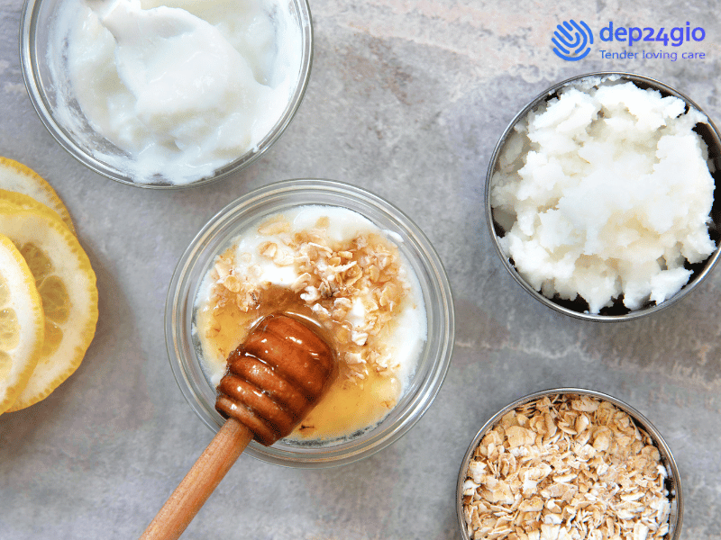 Sữa chua không chỉ giúp làm dịu da mà còn có tác dụng làm sáng và dưỡng ẩm da hiệu quả. Mật ong giúp kháng khuẩn và làm mềm da, giúp hỗn hợp này trở thành một lựa chọn tuyệt vời cho làn da khô và xỉn màu.