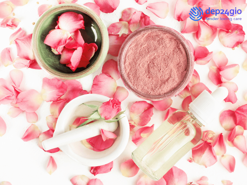 2. Mặt nạ từ đất sét và nước hoa hồng
