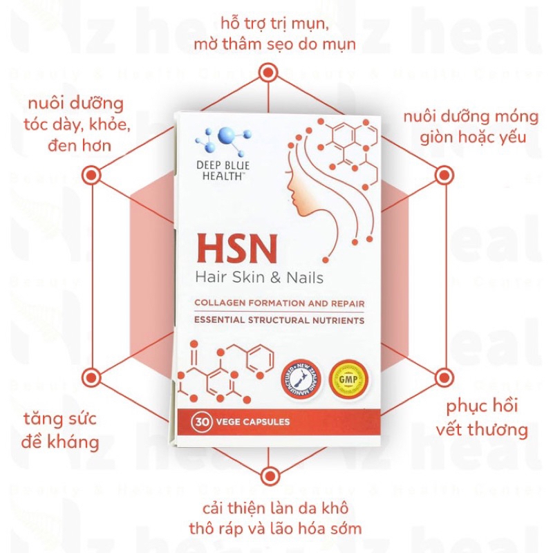 Viên uống hỗ trợ trị mụn HSN Hair Skin & Nails được đặc chế để cung cấp các dưỡng chất cấu trúc thiết yếu cho sự hình thành và sửa chữa collagen. Công thức độc đáo của viên uống HSN hoàn hảo cho bất cứ ai đang bị các tình trạng như: